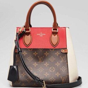 The Louis Vuitton Fold Tote PM. Featuring iconic Monogram coated canvas and richly dyed calfskin leather. Wear this bag unsnapped for versatile silhouettes. Two rolled leather handles and long shoulder strap for crossbody wear. Finished off with luxuriously lined interior and goldtone hardware. Retail price is $2560.