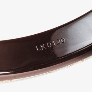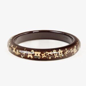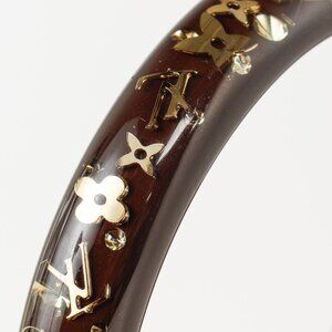 The slip-on Narrow Inclusion bangle from Louis Vuitton is made in a brown resin; and features gold-tone monogram charms, flowers, and crystals embellished throughout.