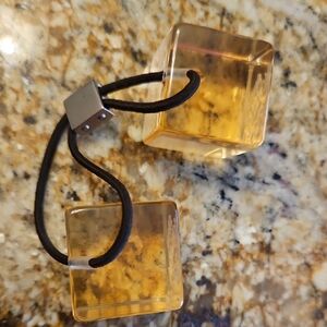 Louis Vuitton hair tie with logo yellow clear resin cubes and elastic connector. In great pre-loved condition with some wear on the cubes - please see all pics. Absolutely authentic hair tie only no dustbag or box.