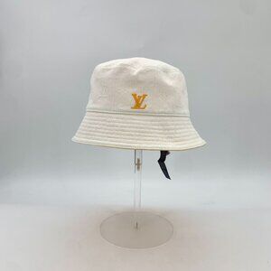 Louis Vuitton Reversible Bucket Hat White/Yellow Cotton Branded Logo Design 60cm