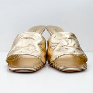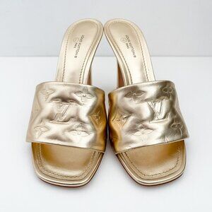 Louis Vuitton Revival Mule Monogram Gold Metalic Heel Padded Heels Sandals