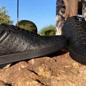 Louis Vuitton Rivoli Sneakers – Black Calf Leather with Monogram Embossing