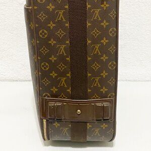 This gently used Louis Vuitton Rolling Luggage is from the Pegase product line. With the classic LV Monogram pattern, is both a fashion statement and practical for travel. It has a brown coated canvas LV monogrammed exterior, with a rich brown color scheme, and is designed to fit conveniently in overhead bins. The luggage's dimensions are 14.25 inches in width, 21.5 inches in height, and 7.5 inches in depth, providing ample space for your belongings. It has a secure zip closure, two leather handles, an additional pull out handle to roll the luggage and gold-tone hardware. Really nice condition - the exterior has some very minor aging of leather handles, minor hardware scratching and there is some discoloration of interior canvas. It is in very clean condition. The luggage tag has an ink mark on it but the luggage tag is removable. Please see detailed photos - I am happy to send more upon request. All of the items I list are from my own closet - nonsmoking, no pets.This will be sent to Poshmark first for authentication.