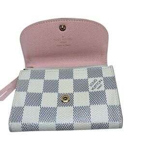 Louis Vuitton Rosalie Coin Purse Wallet Damier Azur Canvas Pink Interior