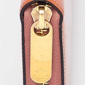 The exterior Vernis is clean throughout, however there are faint scuffs and light scratches on the body of the wallet. The hardware has surface scratches but remains shiny. The interior shows light wear, gentle stretching to the card slots, and has the initials WYK embossed in a compartment. Overall the wallet is clean and in very good condition.