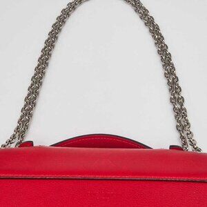 Handles: Short leather top handled and a long chain shoulder strap