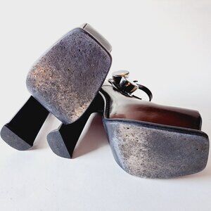 Louis Vuitton Runway Brown Leather Mary Jane Platform Pumps Size 37 / US 7