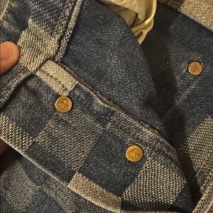 Louis Vuitton SS24 Pharrell Williams pixel check denim jeans. Relaxed straight fit, mid-rise waist. Blue pixel jacquard pattern, rare from Pharrell’s first LV collection. Great condition.