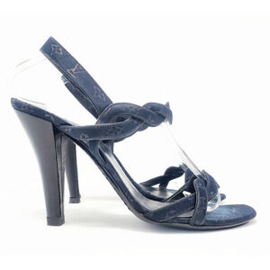 Louis Vuitton Sandals LV Logo Monogram Strappy Heels Black Suede EU 36.5
