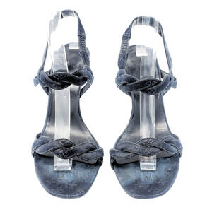 AUTHENTIC Louis Vuitton Heeled Sandals LV Logo Monogram Braided Strappy Heels Black Suede Shoes