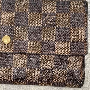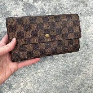 Louis Vuitton Sarah Wallet In Ebene Damier Canvas and Brown Leather Trifold