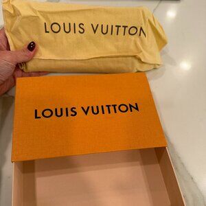 Slight relaxation on the back rear pocket edge (of the coated canvas). Has been stored in dust bag. Box included and dust bag (along w/shopping bag).