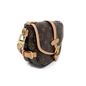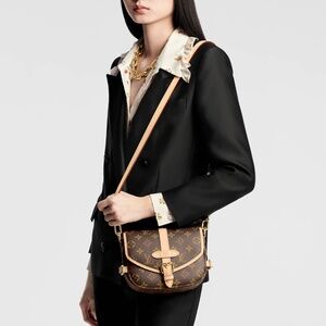 The Saumur BB handbag in Monogram canvas reimagines a beloved archival design in contemporary style. The saddle-bag shape and natural cowhide-leather buckles evoke an equestrian spirit, but the front buckle conceals a magnetic closure: a convenient modern touch. With room inside for a day’s essentials, this compact bag is versatile too, thanks to the detachable strap and handle.