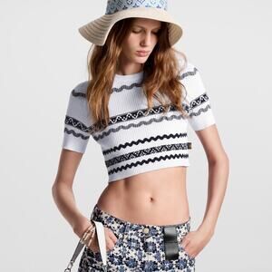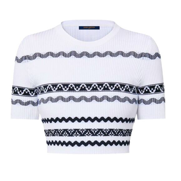 Louis Vuitton - Scallop Stripe Knit Crop Top - Milky White (NOT SOLD AS SET)