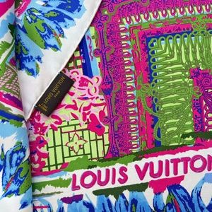 Authentic Louis Vuitton Scarf Monogram Paradise Barbie Blue Green Pink Silk Scarf Wrap