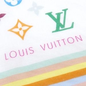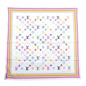 Louis Vuitton Scarf Muffler Women's Blond Cotton Monogram Multicolor Bandana ...
