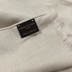 Very pretty Louis Vuitton made of silk, cashmere and wool. This is a preloved item. Please take a moment to look at photos for condition. The LV logo on the front has marks on it. Reach out for additional information.