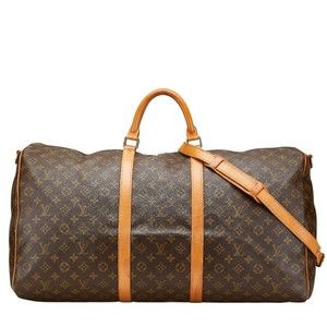 Louis Vuitton Shoulder Brown Monogram Leather Bag Bandouliere Keepall