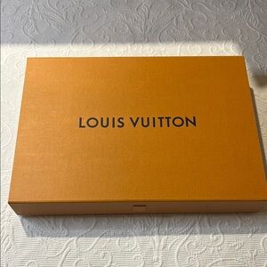 Stylish orange box with iconic Louis Vuitton logo. Ideal for gifting or display. Includes tissue, ribbon, and box. No returns.