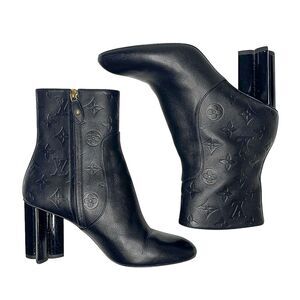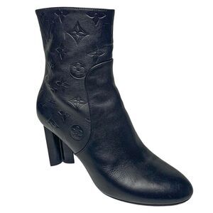 Tags: Louis Vuitton boots, LV Silhouette boots, Louis Vuitton ankle boots, black leather designer boots, LV monogram embossed boots, luxury fashion shoes, Italian leather boots, Louis Vuitton size 38, classic black boots women