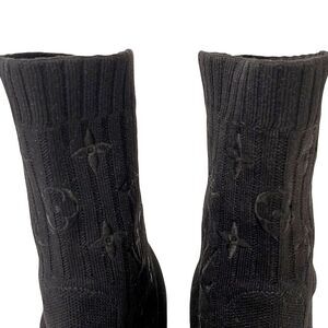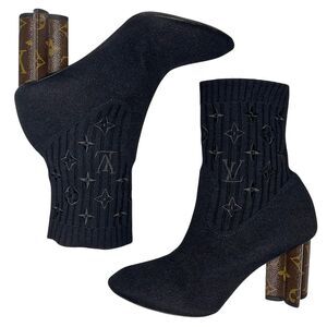 Louis Vuitton Silhouette Sock Ankle Boots Monogram Heel Logo Knit EU 37.5 US 7.5