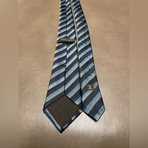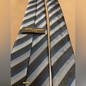 Italian made. 100% silk. Louis Vuitton. Blue modern stripe pattern. Excellent condition.