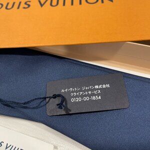 LV Monogram Gradient Tie in Navy. Subtly woven with the Louis Vuitton Monogram pattern, this monogram gradient tie is a timeless design of rare elegance. Tags are still attaches to tie and I do not believe it was ever used. Please take a moment to look at photos for condition. LV initials woven on the back of the tie. Very classy!