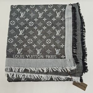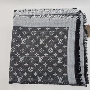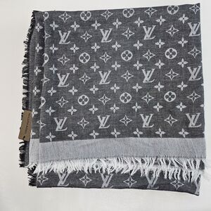 Louis Vuitton Silk/Wool Monogram Scarf Shawl Stole Black/Gray Made in Italy