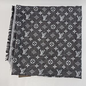 Louis Vuitton Silk Wool Monogram Scarf Black/Gray Made in Italy