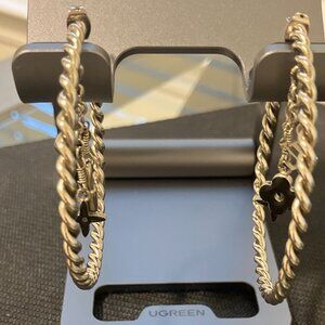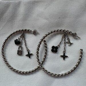 Louis Vuitton Silver Hoop Earrings Sweet Monogram Large Authentic