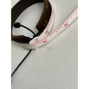 This is a fabulous slide bracelet with black leather ties. It can be unisex.