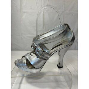 Louis Vuitton Patent Leather Slingback Sandals heelsLouis Vuitton Slingback silver Leather Pumps LV size 35.5 us size 5.5-6SilverBuckle Closure at Sidespre owned good used condition see the pictures for all the details some signs of previous use and wear