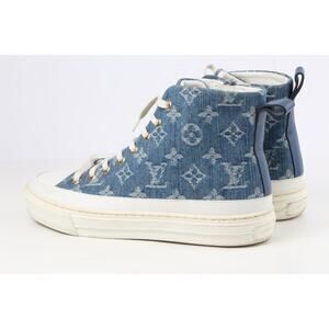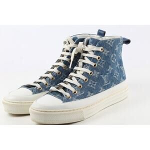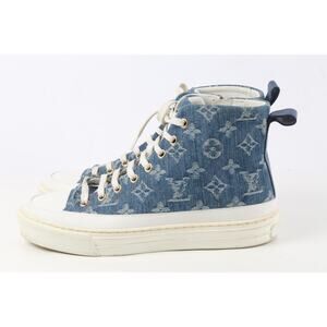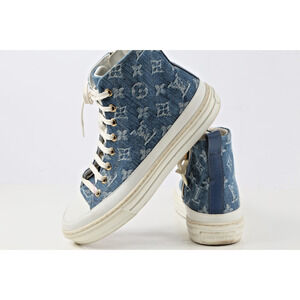 Louis Vuitton Sneakers Blue Denim Monogram High Top Lace Up Size 37