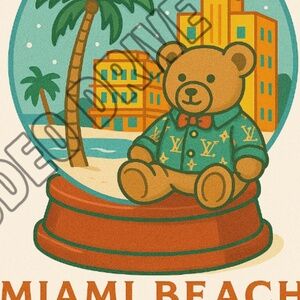 Louis Vuitton Snow Globe Miami Beach Florida Teddy Bear Wall Art Print 11x17