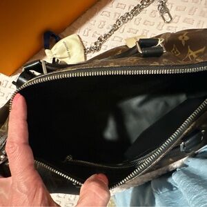 Chic Louis Vuitton satchel featuring classic monogram design. Rich brown with black accents. Includes silver hardware and accessories.