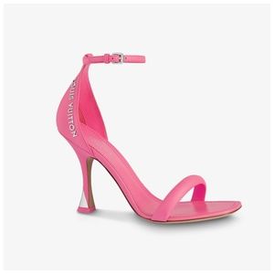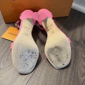 Louis Vuitton Sparkle Leather Sandal Heels Metal Silver Logo Pink - Size 7