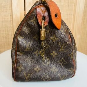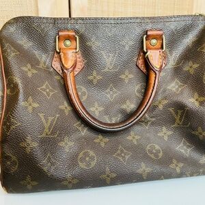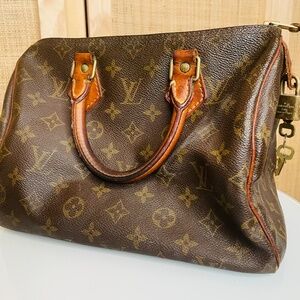 Absolutely gorgeous vintage 90's Louis Vuitton Speedy 25 with working lock, keys, and crossbody strap. No loose stitches, all leather pulls completely intact, leather is beautifully honeyed and canvas is in perfect condition. Inside has a small dark spot. No dust bag. Date code SD0973. From a smoke free/pet free home.