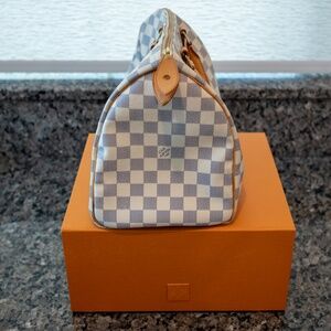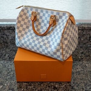 Damier Azur. Has a watermark on side tag. Otherwise in great condition