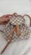 Elegant checkered backpack with tan leather straps. Gold-tone buckle accents. In good condition. Slight discoloration on the leather straps, inside of bag, and on the bottom.