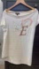 It’s like a white t-shirt- but it’s asymmetrical neckline that allow it to be worn either on, off, or half on/ off the shoulder, graphic that spells out LVOE with letters made out of buttons and embroidered on the shirt, and unique back seam detail give it a dreamy punch of Parisian cool.