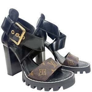 Louis Vuitton Star Trail Monogram Glazed Leather Sandals Black Size 37