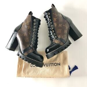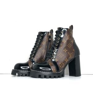 Louis Vuitton Star Trail Monogram LV Logo Leather Platform Lace Up Booties 36