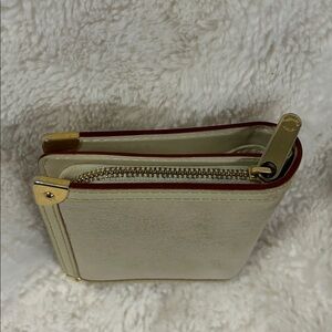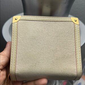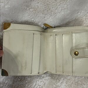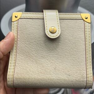 Authentic Louis Vuitton Vintage Cream Compact Wallet. Serial# MI0016. This wallet does have stains on the inside and outside but no rips or tears. Nice stylish cream wallet with gold accents. Perfect for everyday use. Made in France 2006. Please refer to photos for any callouts.