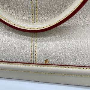 A couple of stains on the exterior leather that a professional could potentially remove, a small mark on the interior, and minor wrinkling on the key holder strap. Otherwise in very good condition.