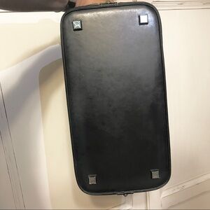 The exterior is clean and beautiful. The handles and the smooth leather trim on the base has some minor scuff marks. The goldtone hardware is still brilliant but does show minor aging. The internal zipper tab and feet still have protection tape. Excellent condition, used once then stored. See photos