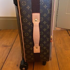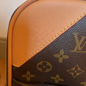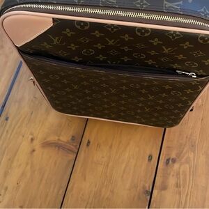 In great condition. Monogrammed with no blemishes on the exterior. There is a small dark smuggle on the mesh net inside the bag and a little tear on the inside of the bag as well on.