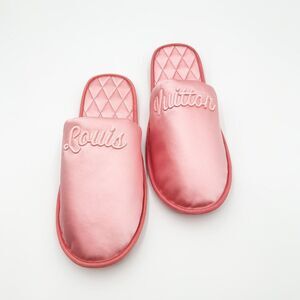 Authentic Louis Vuitton Pink Satin Embroidered Slippers Mules