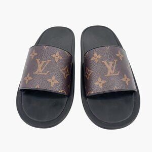 Louis Vuitton Sunbath Black LV Monogram Pool Slide Sandals Size 37 US 7 Women's