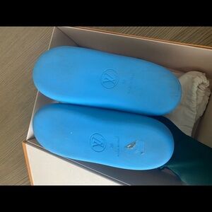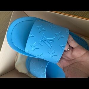In good preowned condition size 38. Sold out color!! Purchased at a designer boutique for my summer vacation but they fit me too loose. Will not work for narrow feet. Comes with original box and dust bags. Signs of wear on bottom soles