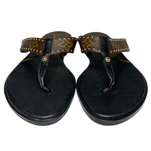 Louis Vuitton Sunny Flat Thong Sandals EU 37 Brown Monogram Logo Flip Flop Slide